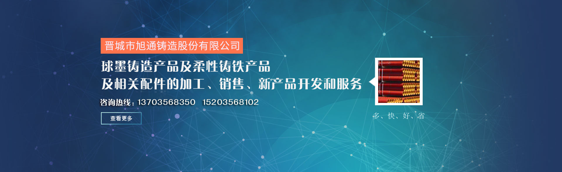 晉城市旭通鑄造股份有限公司是一家致力于球墨鑄造產品及柔性鑄鐵產品及相關配件的加工、銷售、新產品開發(fā)和服務的網絡平臺,以“多、快、好、省”為服務宗旨,多種選擇、快速定位、優(yōu)質產品、省錢省力,為客戶提供精準服務......